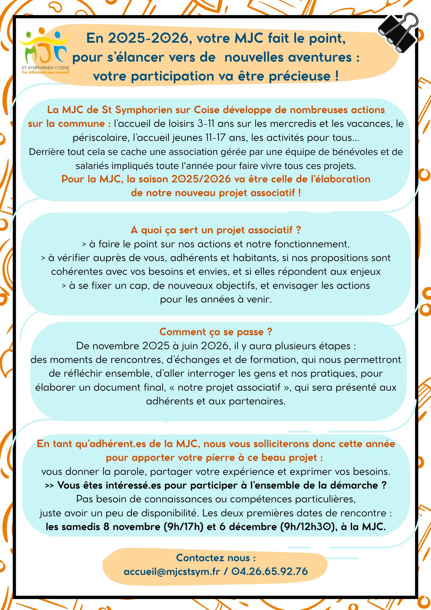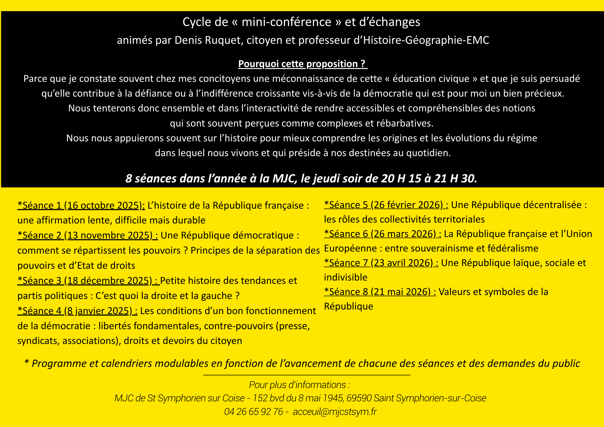 MJC St Symphorien sur coise 152 bd du 8 Mai 1945 69590 St Symphorien sur Coise  |